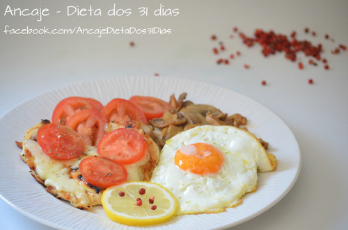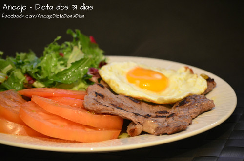 6. Jantar, costeleta grelhada com ovo e salada.