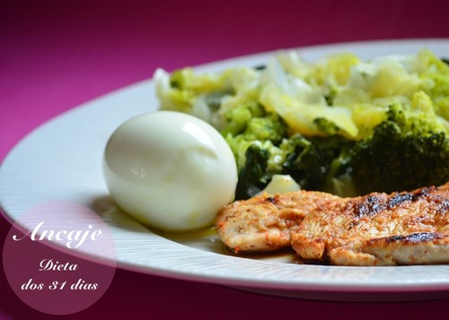 2. Almoço, filete de perú grelhado com ovo e legumes cozidos