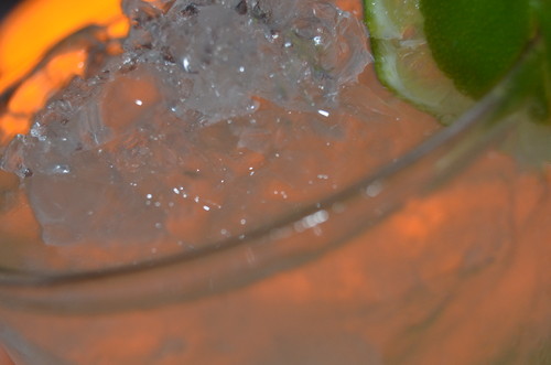 3. Almoço, prato de camarão cozido com queijo, fiambre e presunto, acompanhado por um grande copo gelado de chá verde com gengibre e limão.